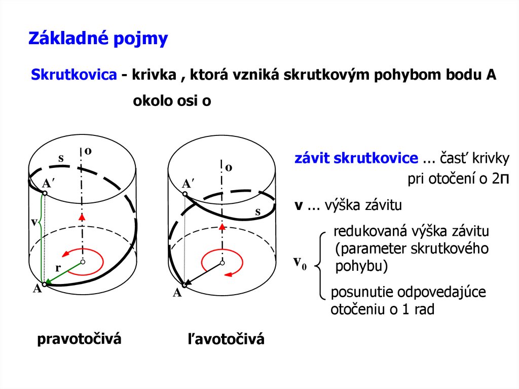Základné pojmySkrutkovica - krivka , ktorá vzniká skrutkovým pohybom bodu A