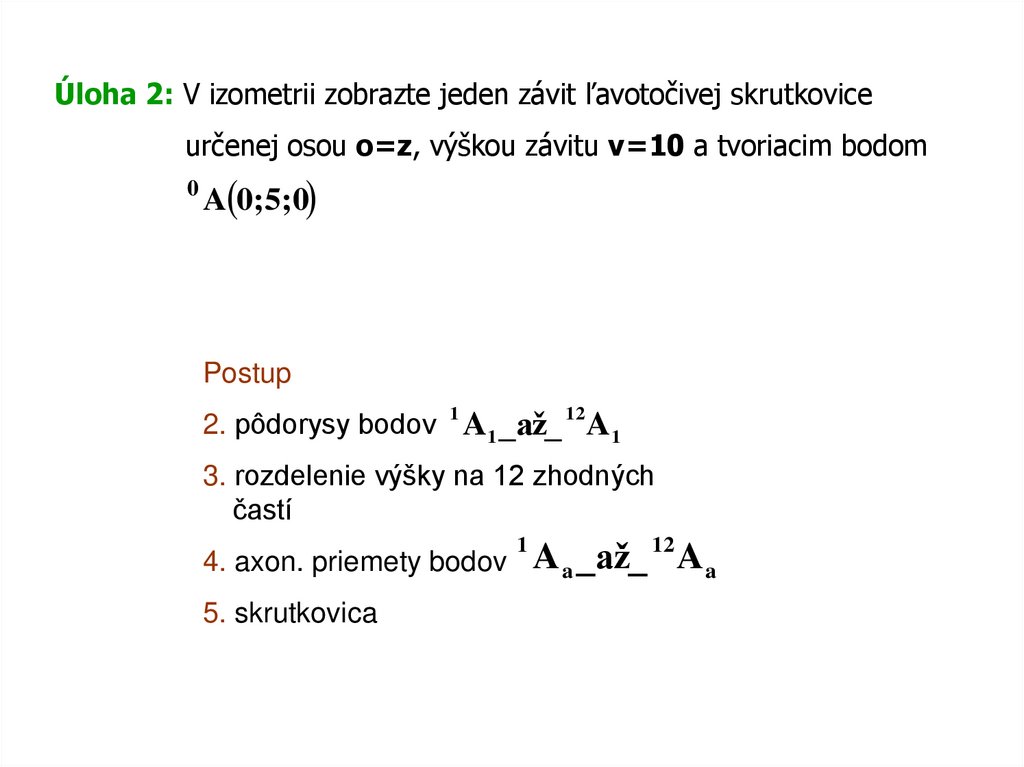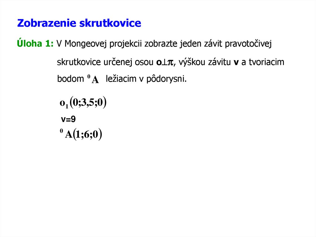 Zobrazenie skrutkoviceÚloha 1: V Mongeovej projekcii zobrazte jeden závit pravotočivej