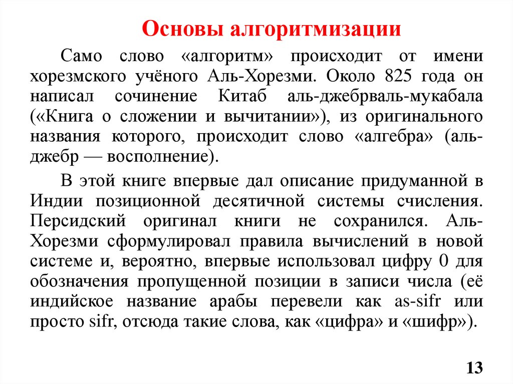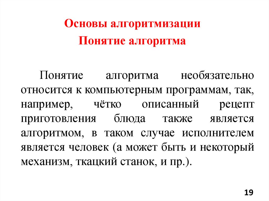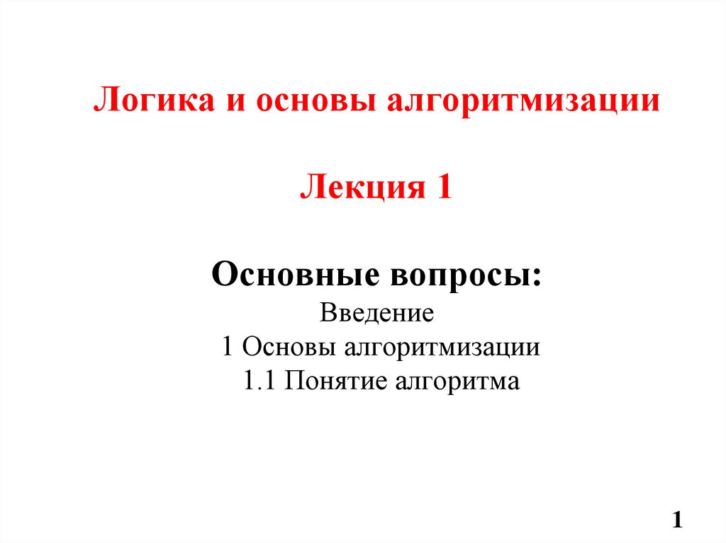 1. Логика и основы алгоритмизации Лекция 1 Основные вопросы: Введение 1 Основы алгоритмизации 1.1 Понятие алгоритма