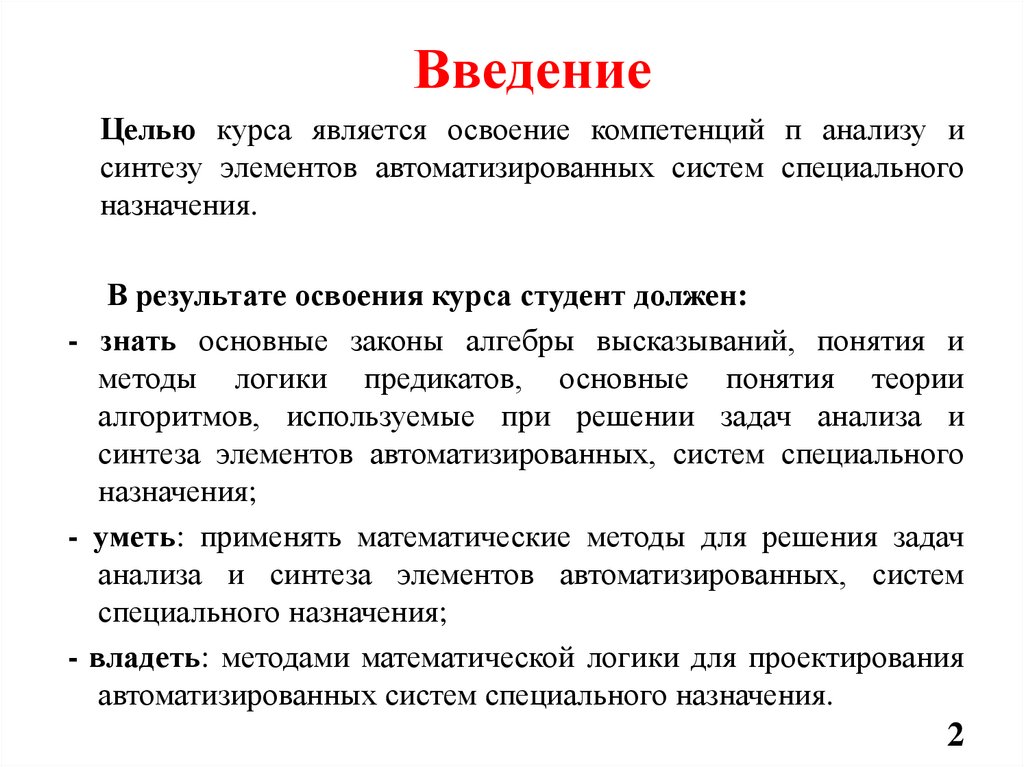 ВведениеЦелью курса является освоение компетенций п анализу и