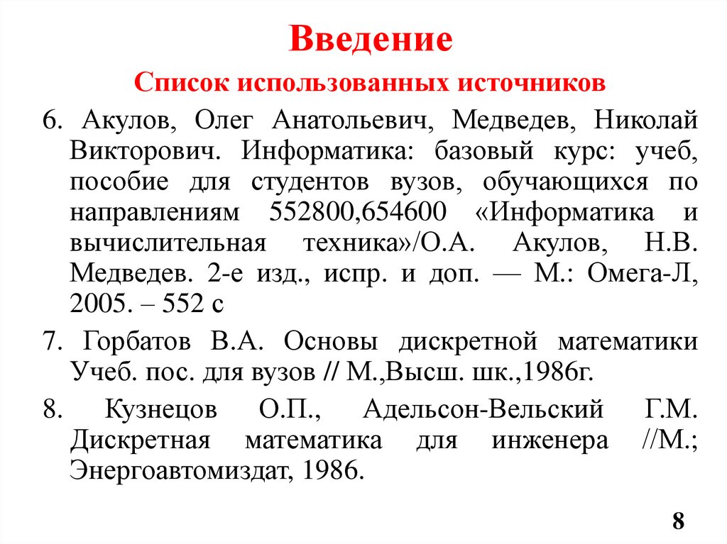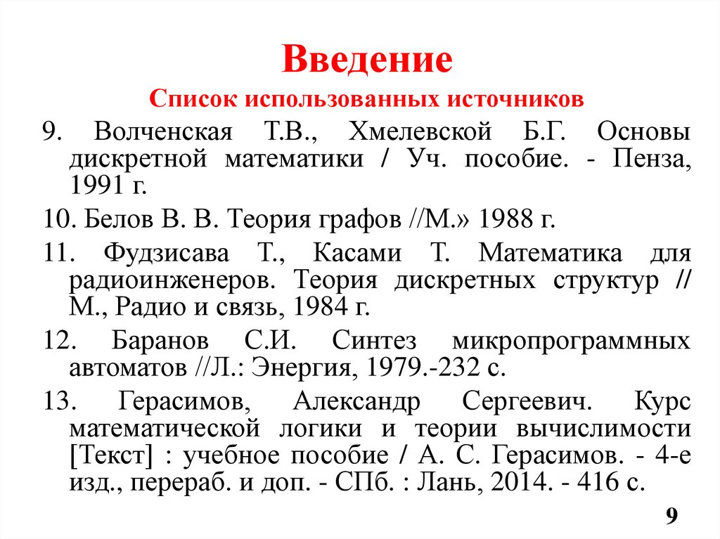 10. Белов В. В. Теория графов //М.» 1988 г.