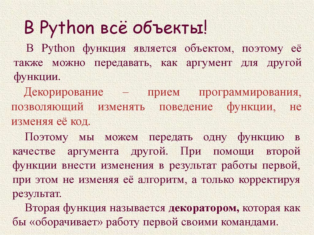 Декораторы# переопределим функцию, используя функцию декоратор