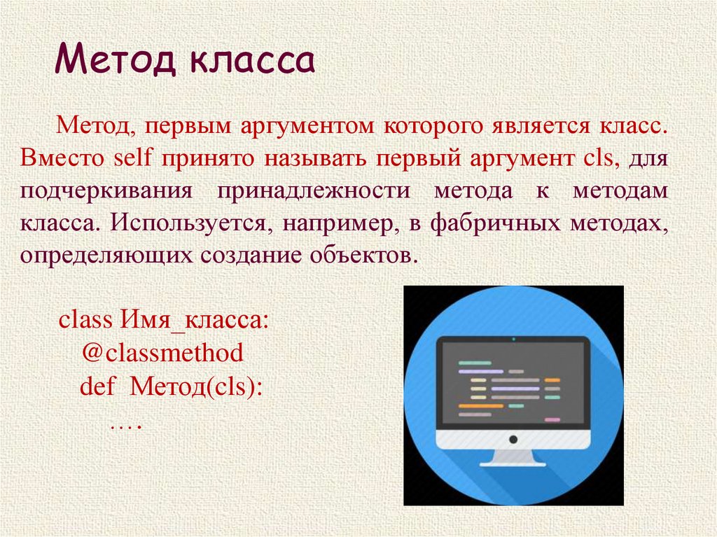 Метод классаМетод, первым аргументом которого является класс.
