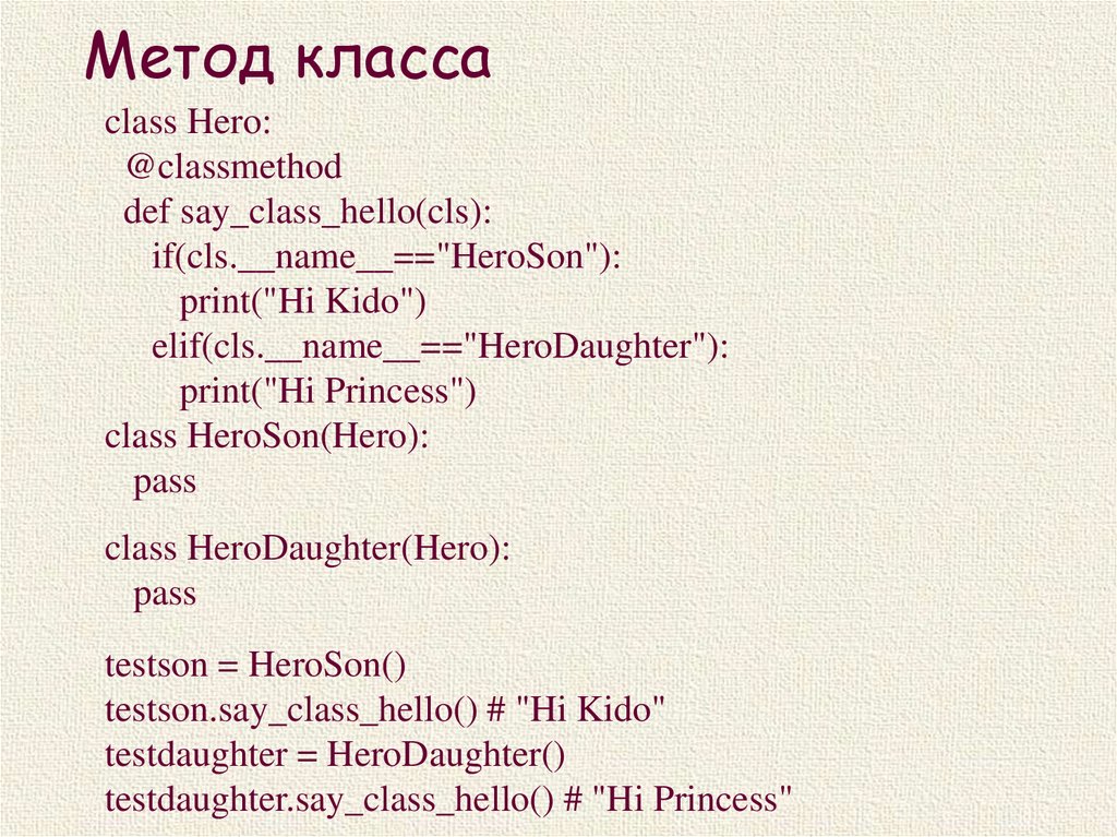 Метод классаclass Hero: