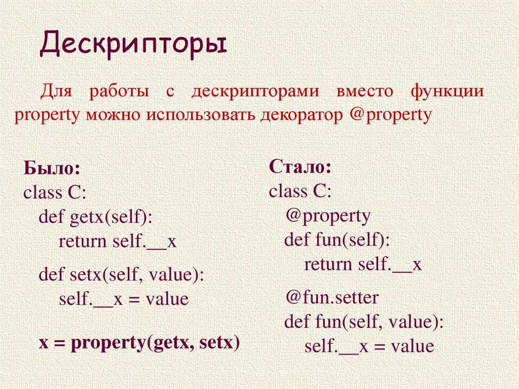 ДескрипторыДля работы с дескрипторами вместо функции