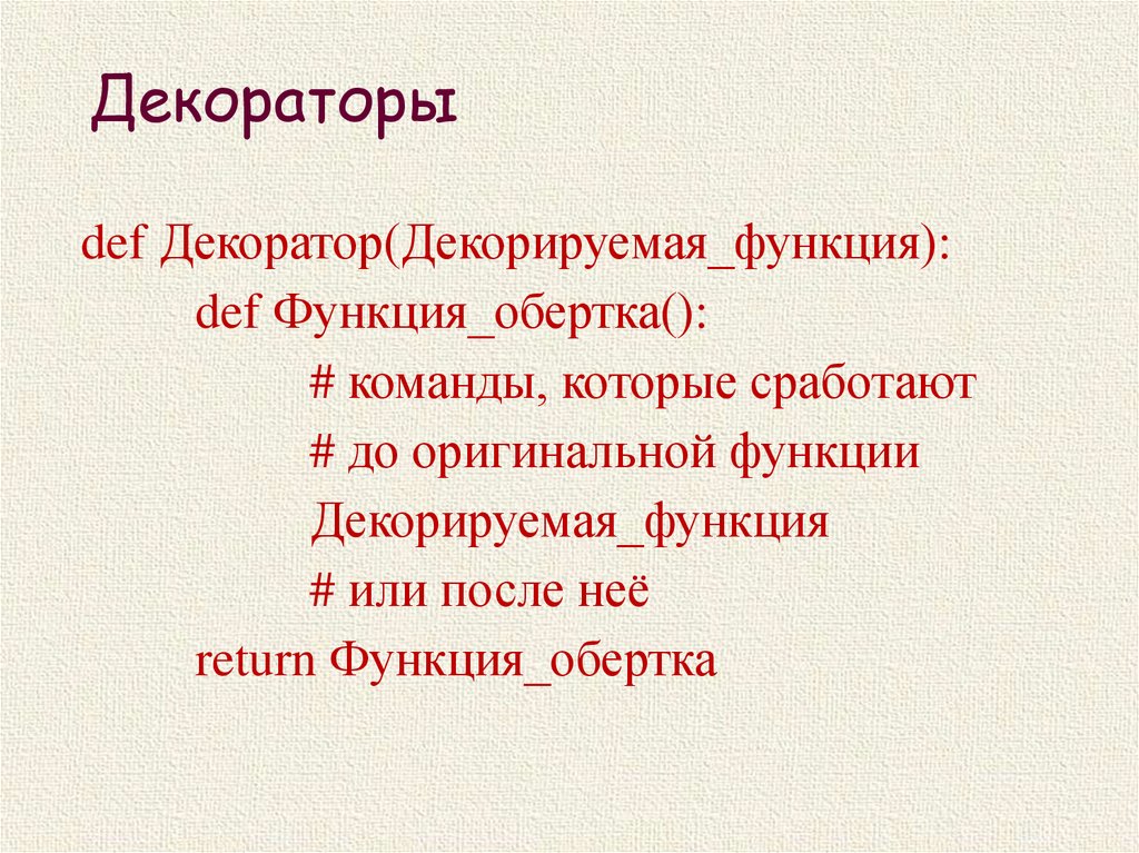 Оригинальная_функция=Декоратор(Оригинальная_функция)