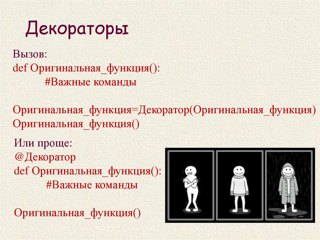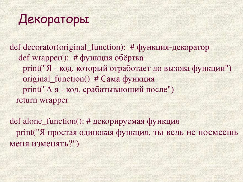 Декораторыdef decorator(original_function): # функция-декоратор
