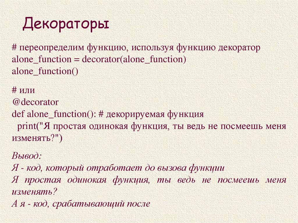 def alone_function(): # декорируемая функция
