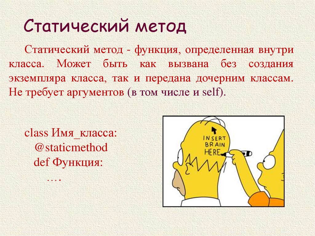 Статический методСтатический метод - функция, определенная внутри