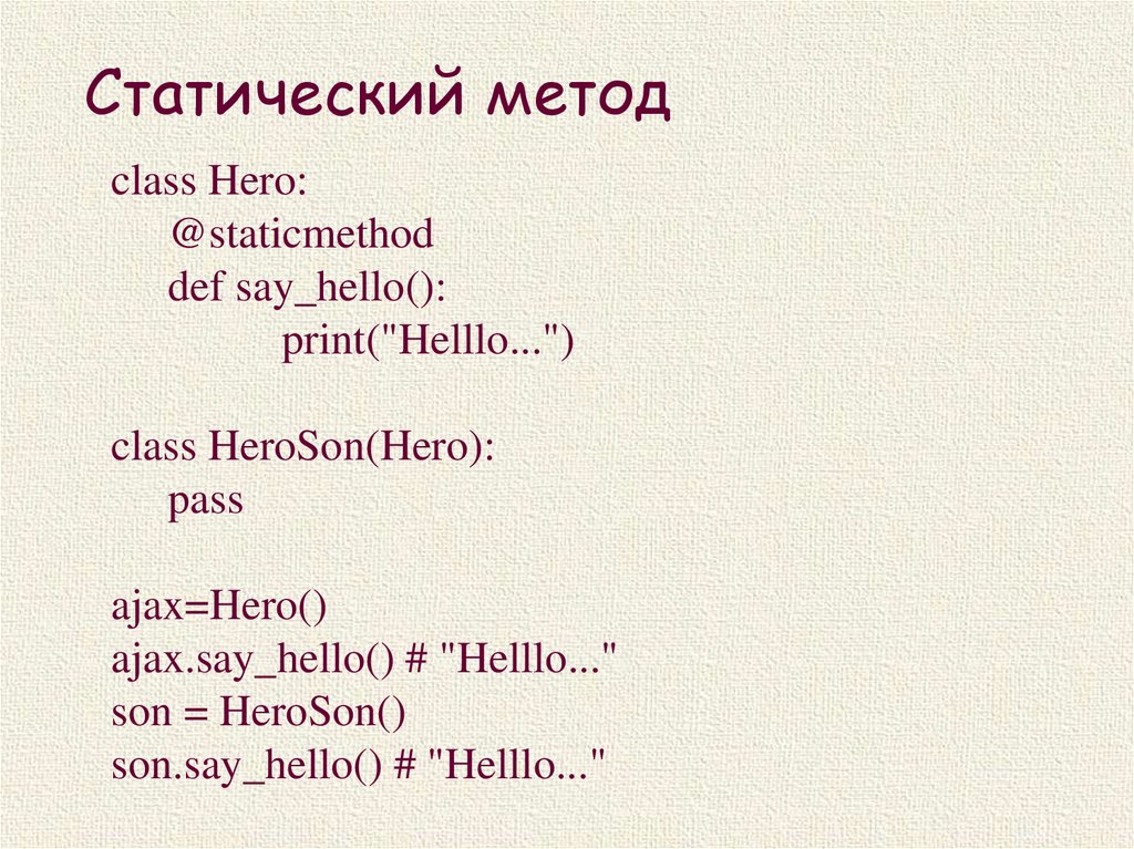 Статический методclass Hero:
