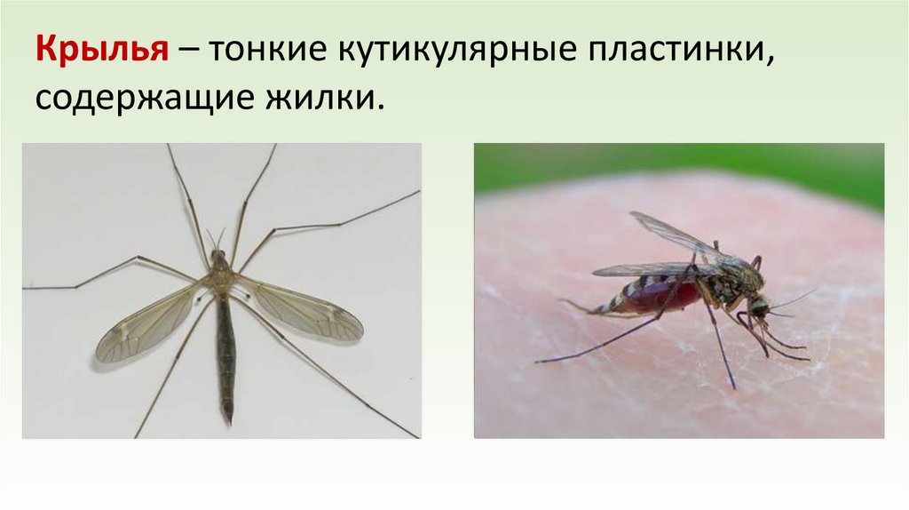 Крылья – тонкие кутикулярные пластинки,содержащие жилки.