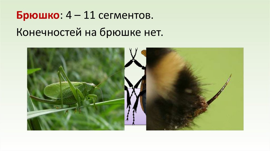 Брюшко: 4 – 11 сегментов.Конечностей на брюшке нет.