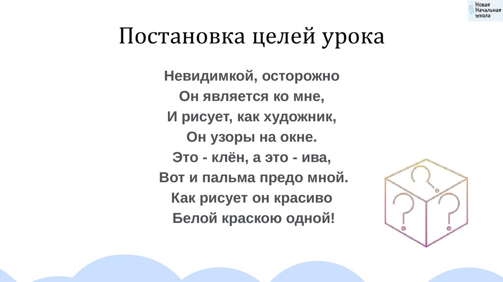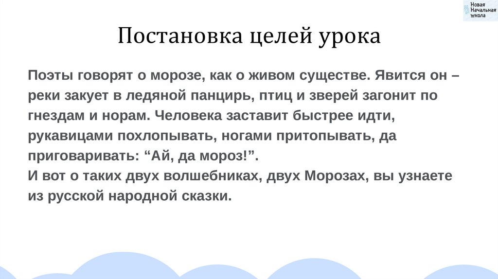 Постановка целей урокаПоэты говорят о морозе, как о живом существе. Явится он –