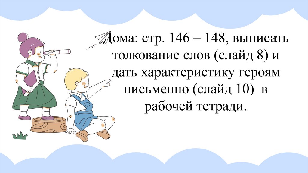 Дома: стр. 146 – 148, выписатьтолкование слов (слайд 8) и
