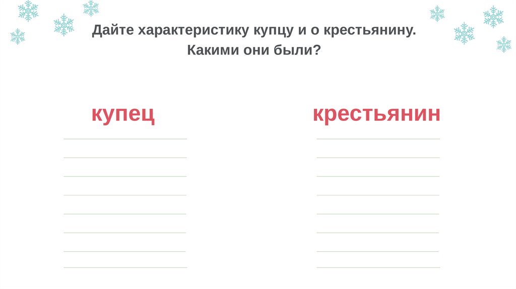 Дайте характеристику купцу и о крестьянину.Какими они были?