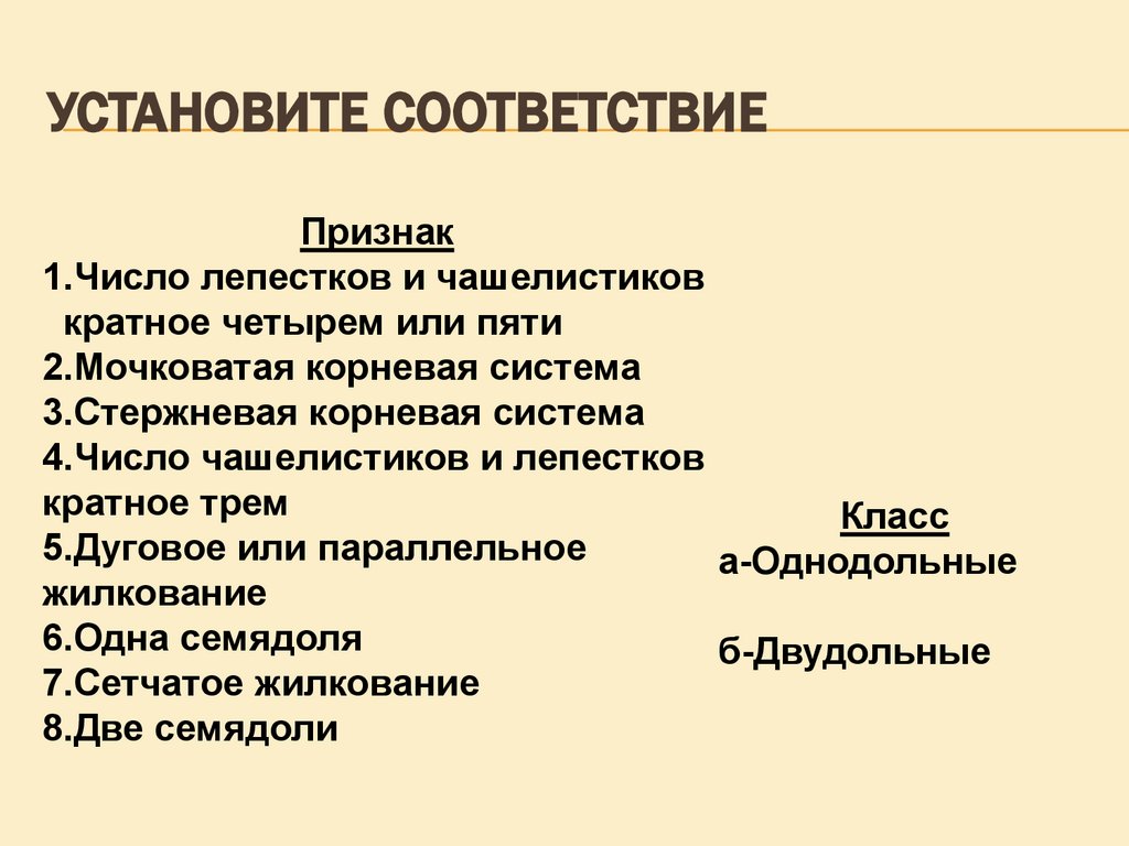 УСТАНОВИТЕ СООТВЕТСТВИЕПризнак