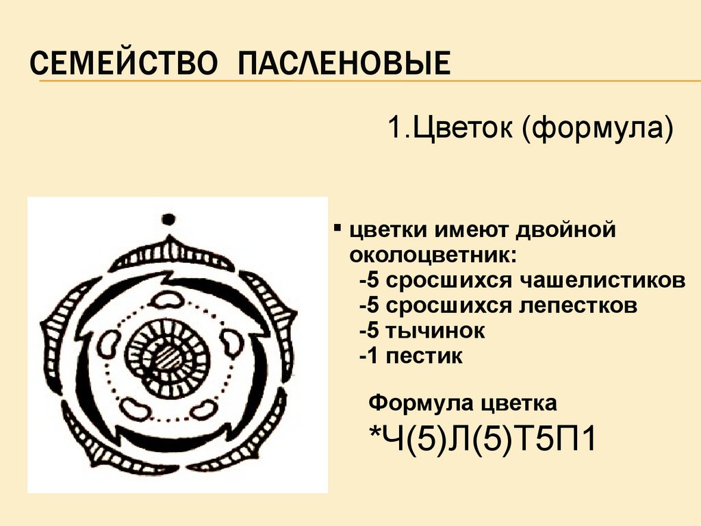 СЕМЕЙСТВО ПАСЛЕНОВЫЕ1.Цветок (формула)