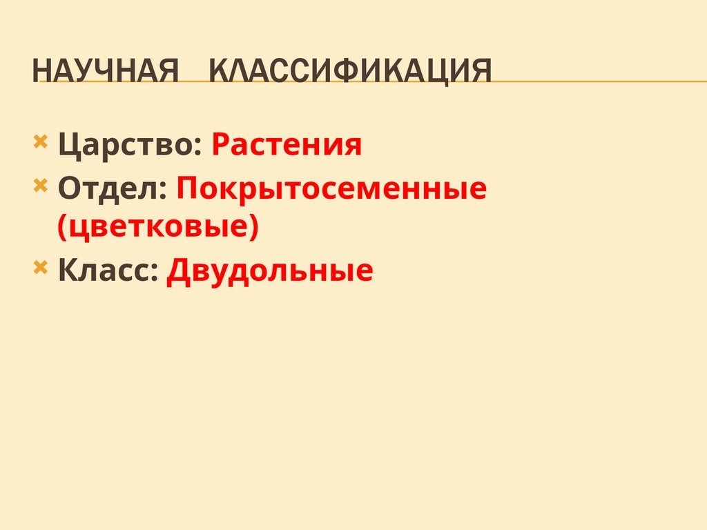 НАУЧНАЯ КЛАССИФИКАЦИЯЦарство: Растения