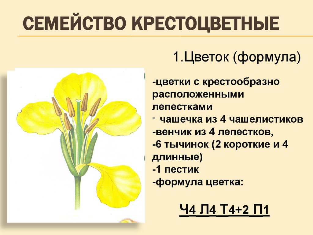 СЕМЕЙСТВО КРЕСТОЦВЕТНЫЕ1.Цветок (формула)