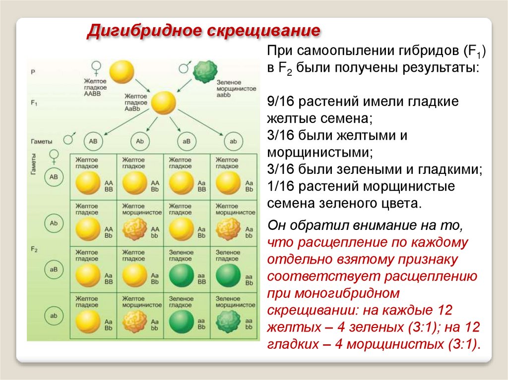 Дигибридное скрещиваниеПри самоопылении гибридов (F1)