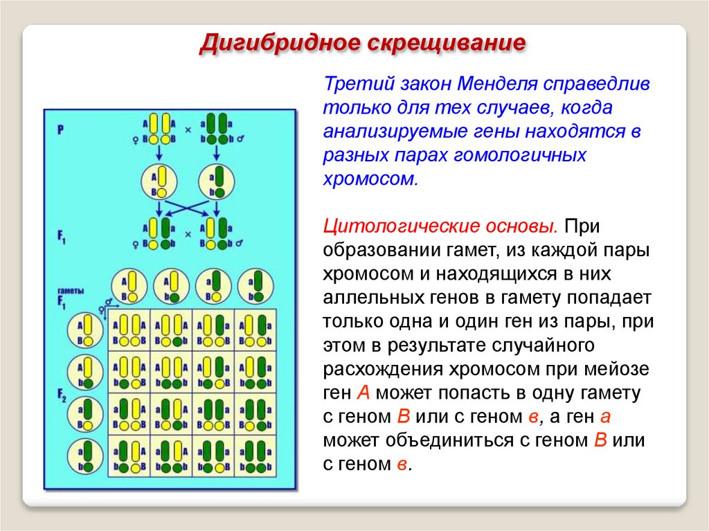 Дигибридное скрещиваниеТретий закон Менделя справедлив
