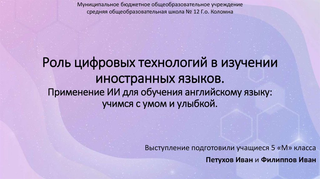 1. Роль цифровых технологий в изучении иностранных языков. Применение ИИ для обучения английскому языку: учимся с умом и улыбкой.