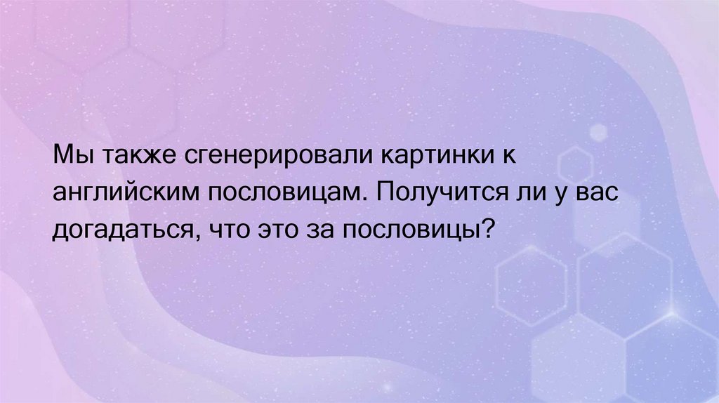 Мы также сгенерировали картинки канглийским пословицам. Получится ли у вас