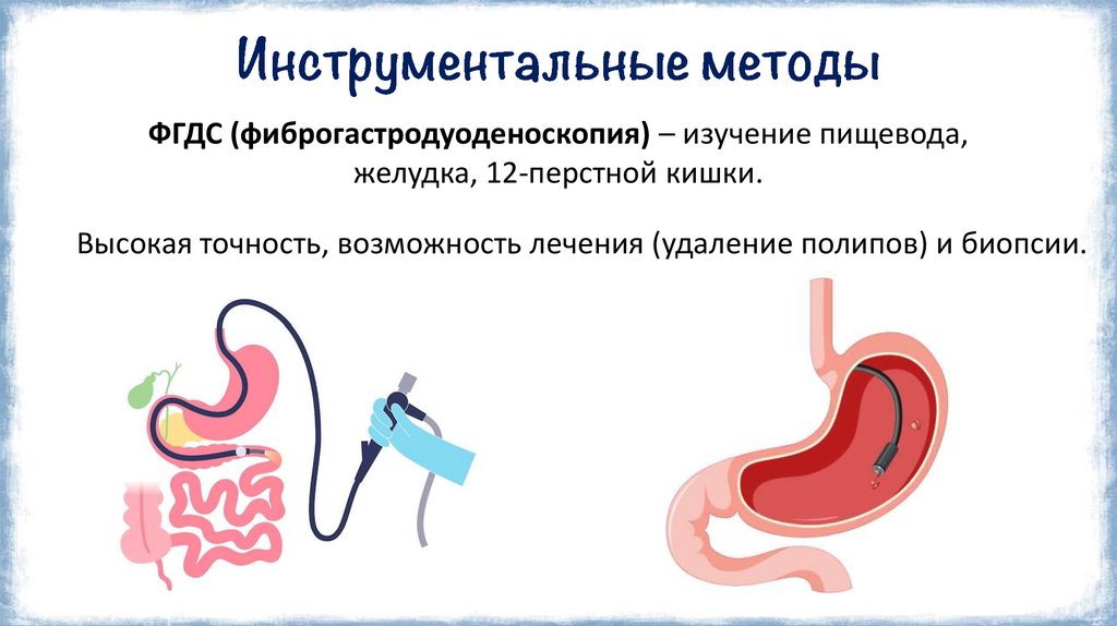 ФГДС (фиброгастродуоденоскопия) – изучение пищевода,желудка, 12-перстной кишки.
