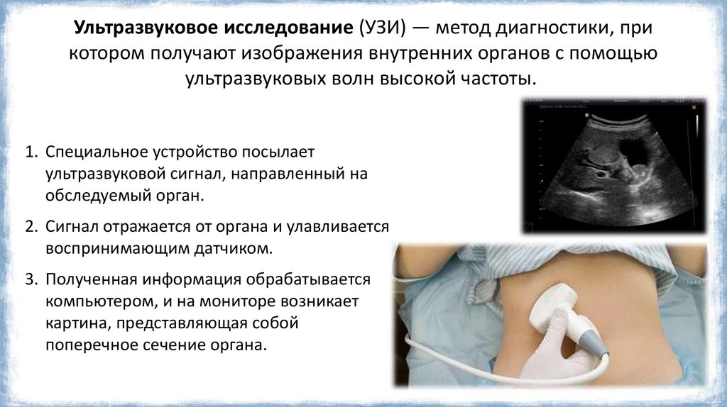 Ультразвуковое исследование (УЗИ) — метод диагностики, прикотором получают изображения внутренних органов с помощью