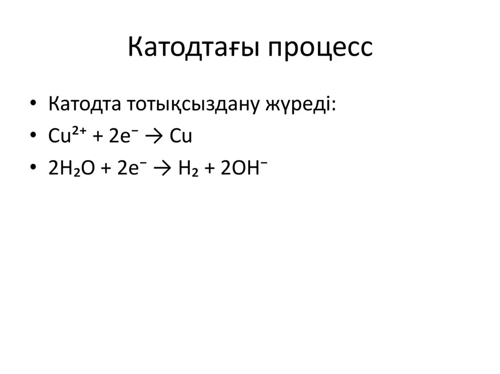 Катодтағы процесс• Катодта тотықсыздану жүреді: