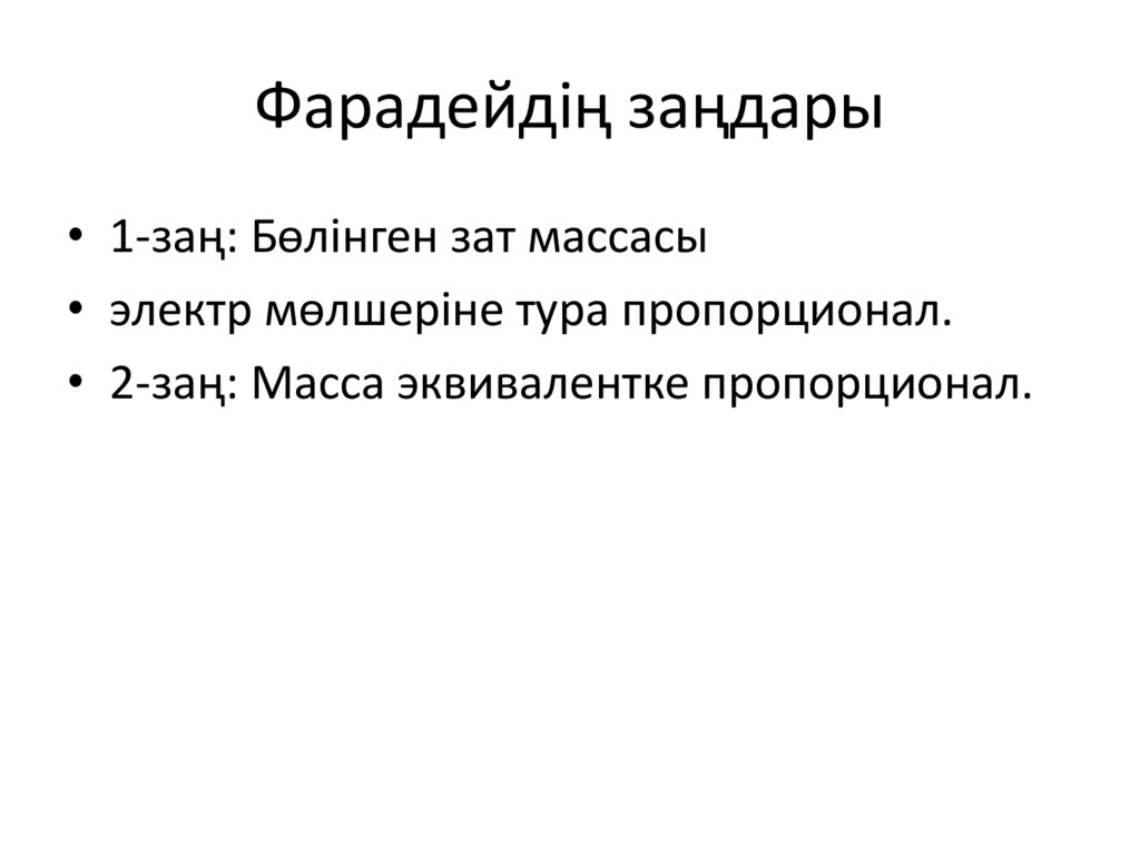Фарадейдің заңдары• 1-заң: Бөлінген зат массасы