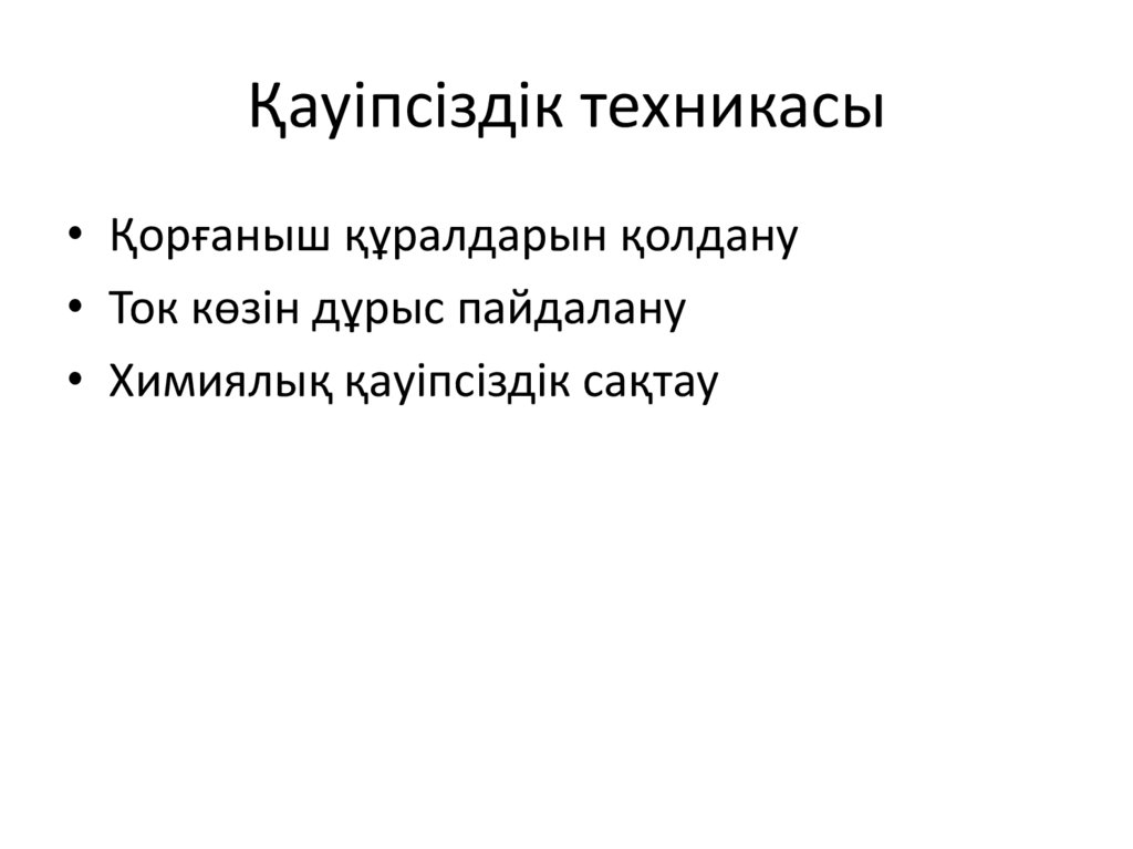 Қауіпсіздік техникасы• Қорғаныш құралдарын қолдану