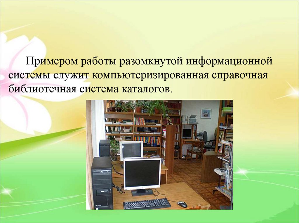 Примером работы разомкнутой информационнойсистемы служит компьютеризированная справочная