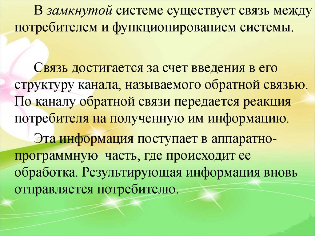 В замкнутой системе существует связь междупотребителем и функционированием системы.