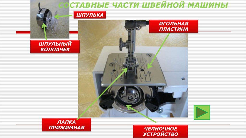 СОСТАВНЫЕ ЧАСТИ ШВЕЙНОЙ МАШИНЫ