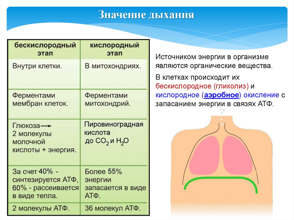 Значение дыханияИсточником энергии в организме