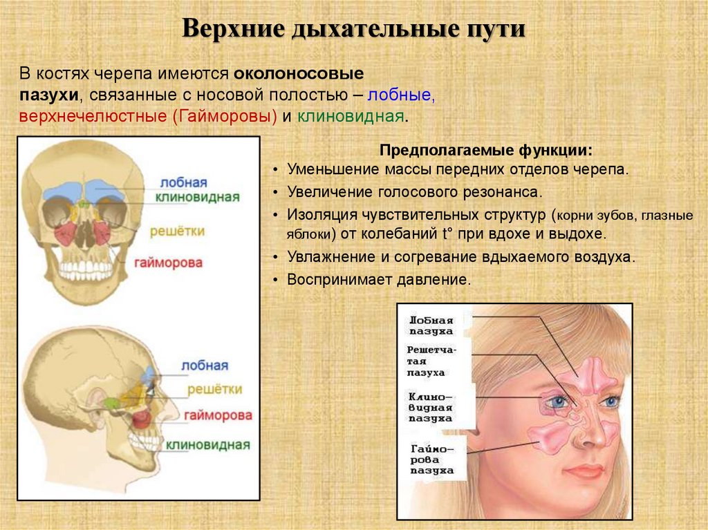 Верхние дыхательные путиВ костях черепа имеются околоносовые