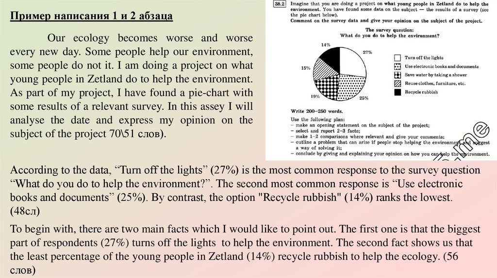 Пример написания 1 и 2 абзацаOur ecology becomes worse and worse