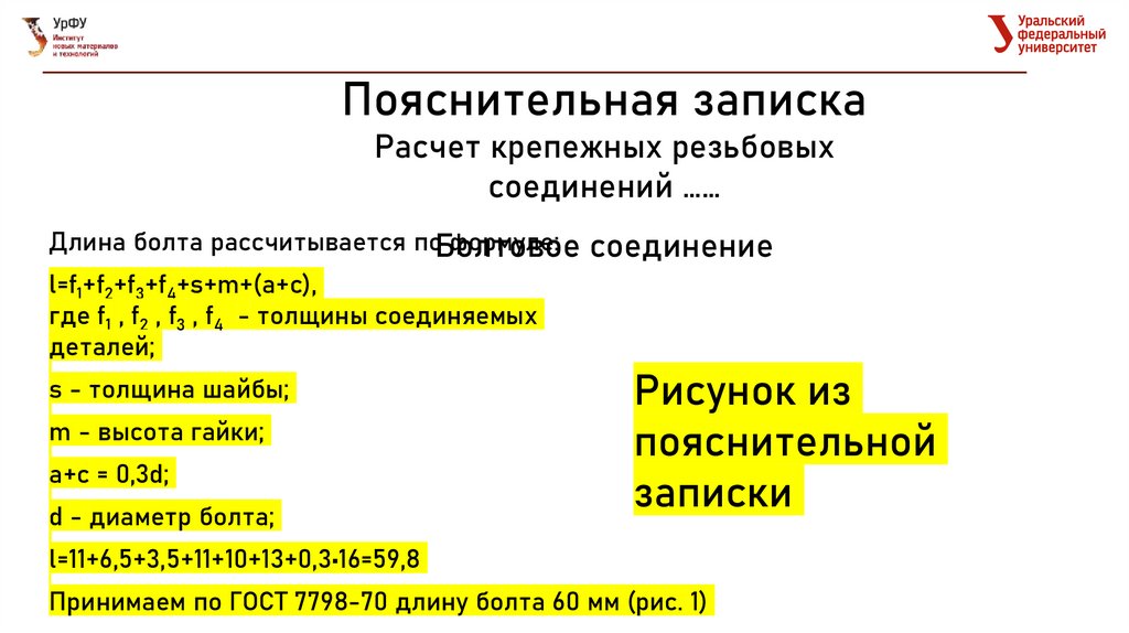 Пояснительная запискаРасчет крепежных резьбовых