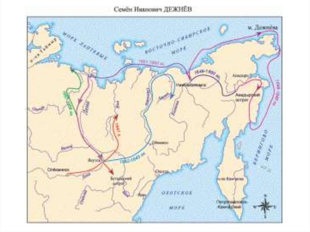• Семен Дежнем 1648 – плавание вдольЧукотского п-ва, открыл пролив,