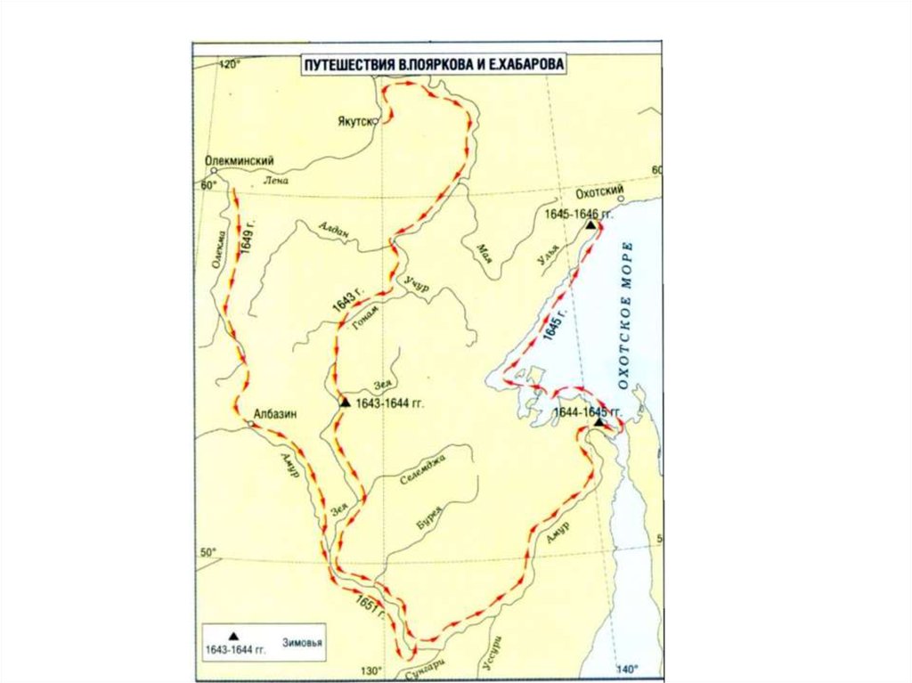 • Ерофей Хабаров 1649-1650 осуществилпоход в Даурию, освоил земли по реке