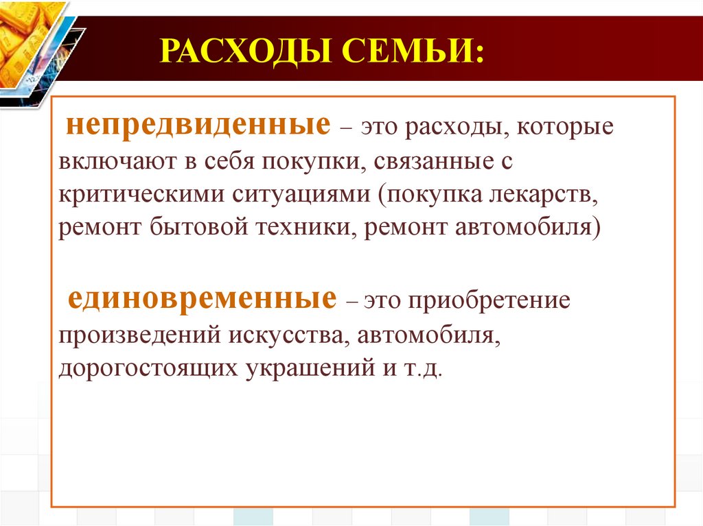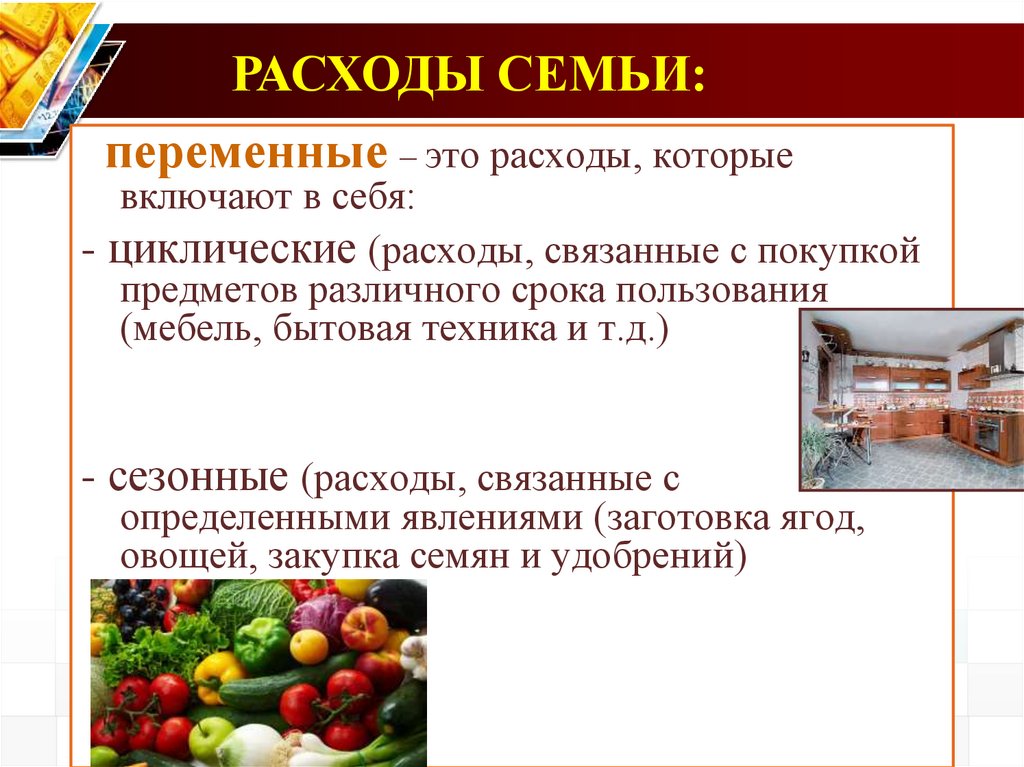 РАСХОДЫ СЕМЬИ:переменные – это расходы, которые