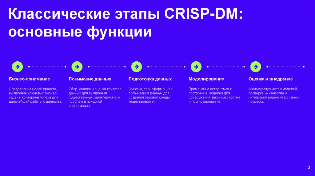 Классические этапы CRISP-DM:основные функции