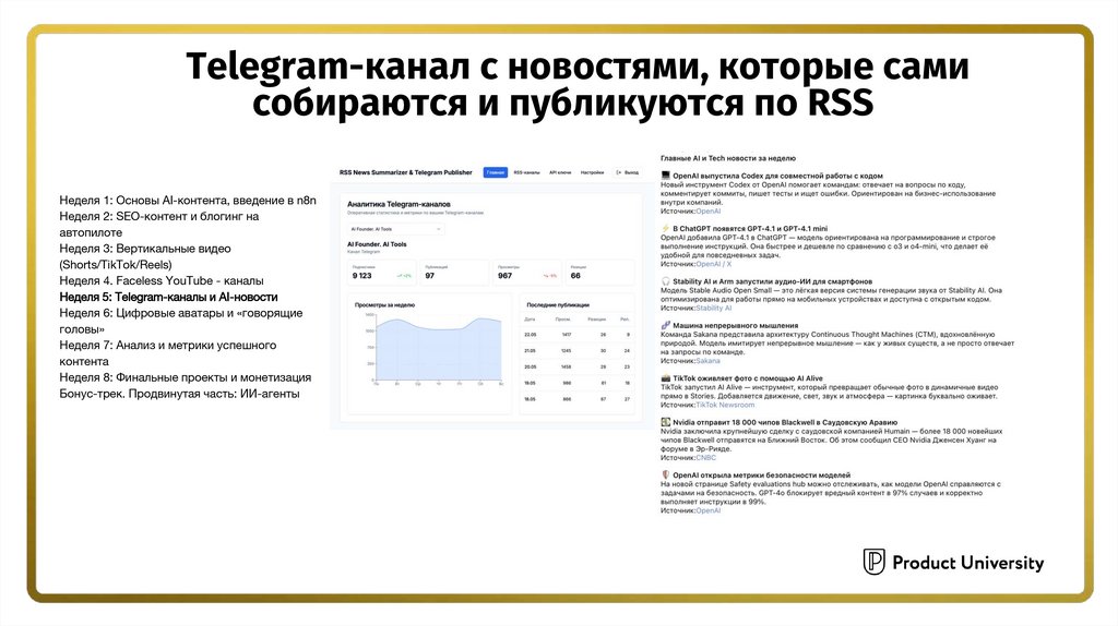 тематике (ежедневные новости в Telegram-канале, ежеднедельный