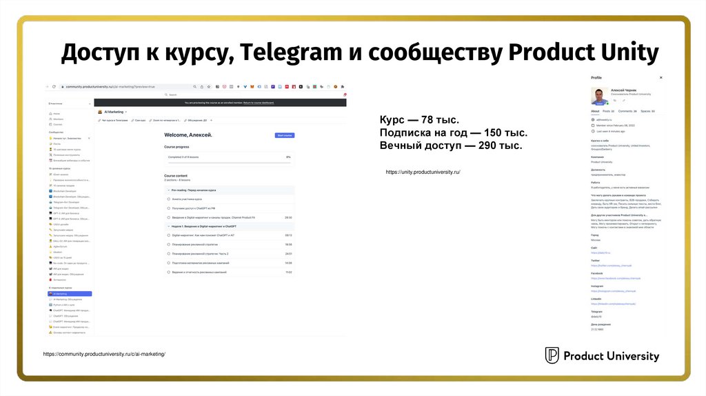 Доступ к курсу, Telegram и сообществу Product UnityКурс — 78 тыс.