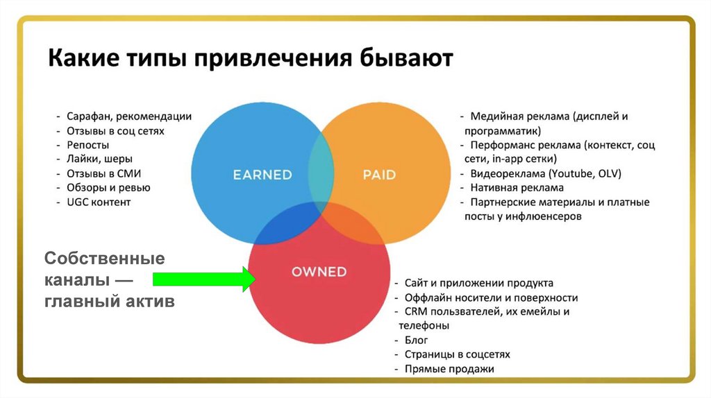 3. Лучший тип каналов продаж — собственные, а не чужие (своя emailрассылка, например)