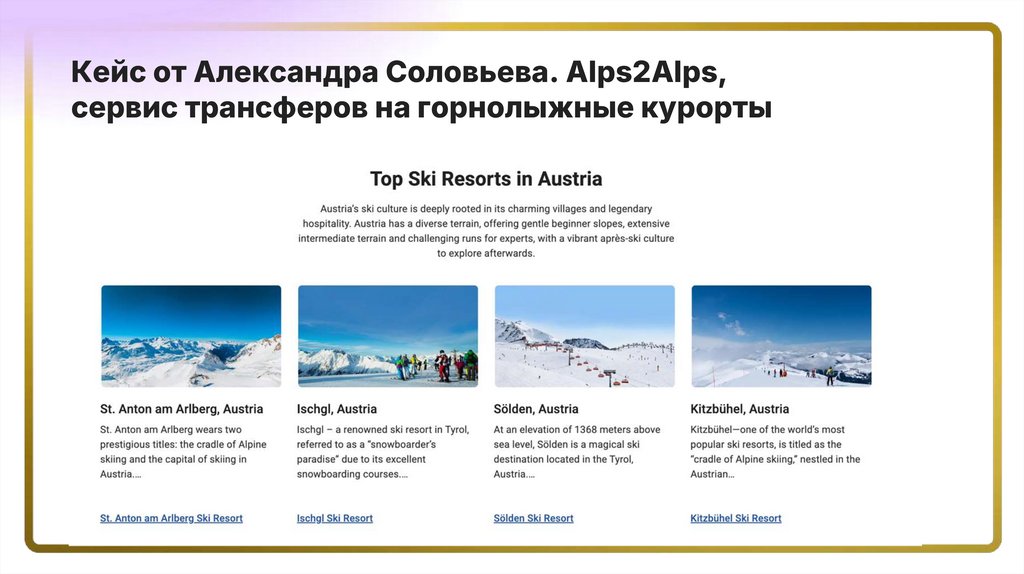 Кейс от Александра Соловьева. Alps2Alps,сервис трансферов на горнолыжные курорты