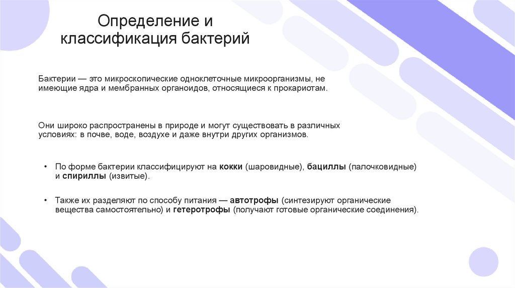 Бактерии — это микроскопические одноклеточные микроорганизмы, не