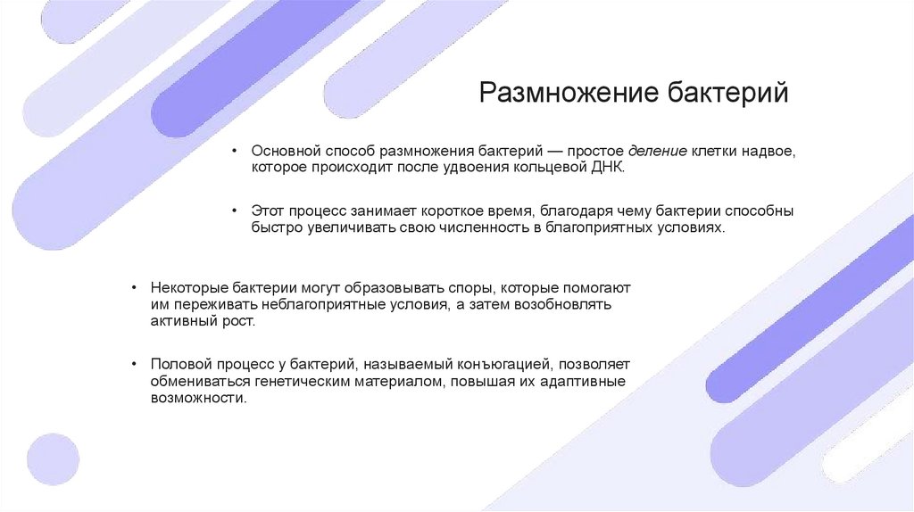 • Этот процесс занимает короткое время, благодаря чему бактерии способны