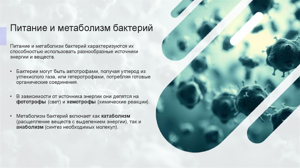 Питание и метаболизм бактерийПитание и метаболизм бактерий характеризуются их
